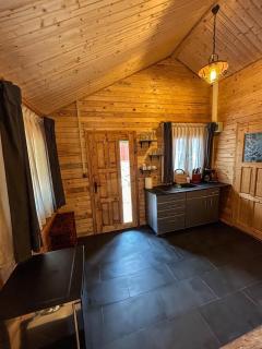 The lodge consists of 1 bedroom, a living room, a fully equipped kitchenette with a fridge and a coffee machine, and a bathroom with a shower and free toiletries.